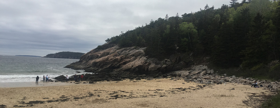 Sand Beach was aptly named as its sandy shore makes it unique to the park where the majority of the coast is made up of rock or cliffs. On a chilly day in May, this was the coldest part of the trip since the breeze comes right off the ocean, but it's perfect for flying kites or playing in the sand. The beach is framed by rock on either side, topped with trees for beautiful pictures or a little adventure. This stop has restrooms and a foot-rinsing station, so feel free to dip your toes in the water and run around on the sand. It's generally too cold to swim at this beach, but the breeze makes it nice for sunbathers to keep cool. And just a short scenic walk (or drive) of less than a mile is Thunder Hole.